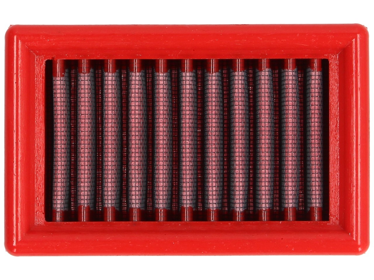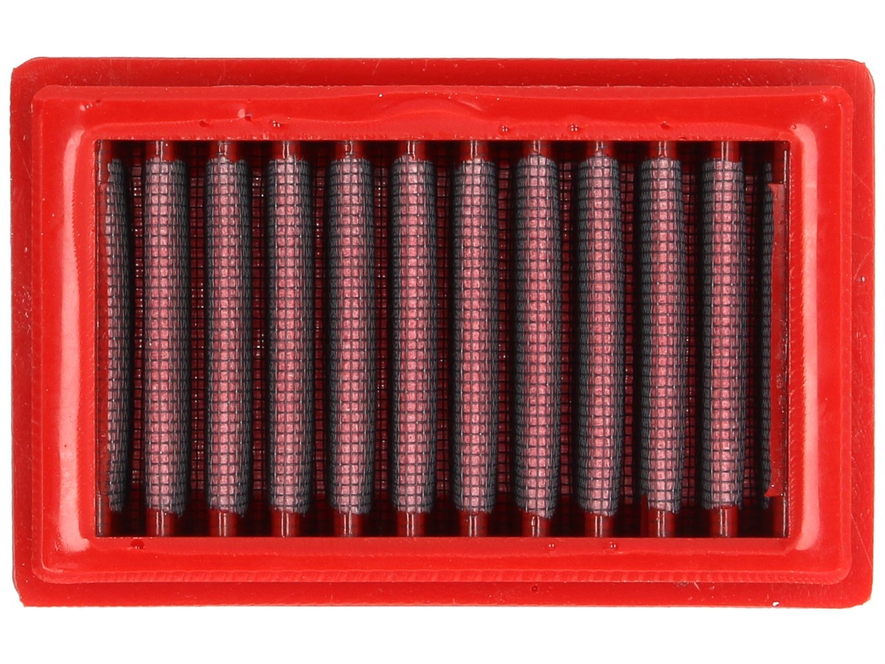 BMC's Filterrahmenkonstruktion wird in einem einzigartigem Prozess, "Full Moulding" genannt, gefertigt. Dieser ermöglicht die Produktion des auffällig roten Filters in einem einzigen Formungsprozess, ohne, dass die Ecken geklebt werden müssen, was Brüche verursachen würde. Am BMC Luftfilter ragt von allen auf dem Markt verfügbaren Filtern am wenigsten Gummimaterial über (weniger als 6 mm) und ermöglicht so eine maximale Filteroberfläche.