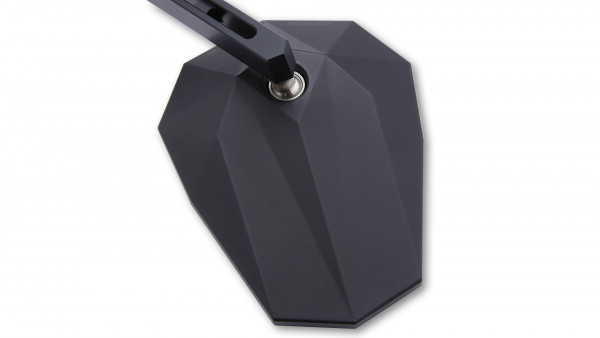 Kombiniert mit der Farbe matt schwarz hat der Spiegelkopf aus wertigem Kunststoff mit seinen eckigen Elementen eine markante Ausstrahlung.